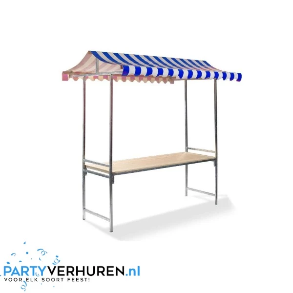A market stall (for indoor or outdoor use) is extremely suitable during a fair, (Christmas) market or trade fair. These stalls are very robust and of high quality. The handy awning is made of good quality canvas and ensures that you are dry. Due to the relatively long dimensions in both width and length of this stall, you will always have enough space for all your goods.