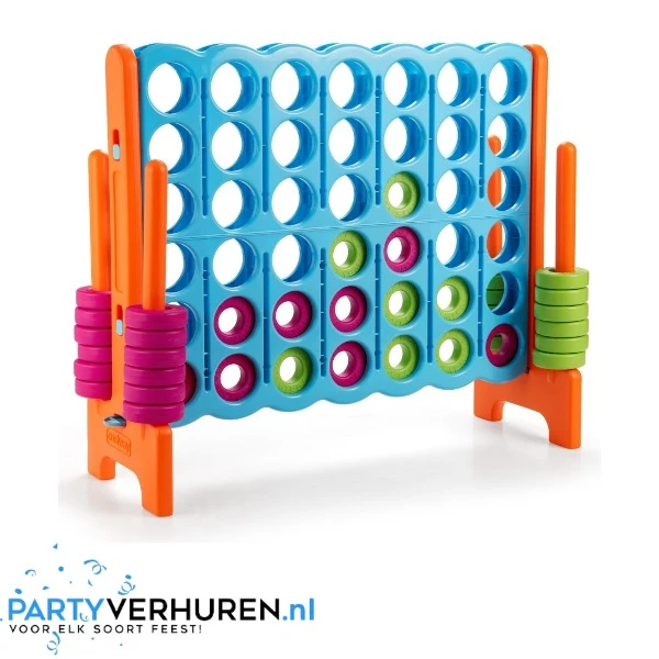 This giant four-in-a-row game ensures that this simple, but very entertaining four-in-a-row game is magnified. Rent this giant four-in-a-row game for a children's party, neighborhood party or other event where children also come. Who is the first to line up four of the included chips and is the winner of this game?
