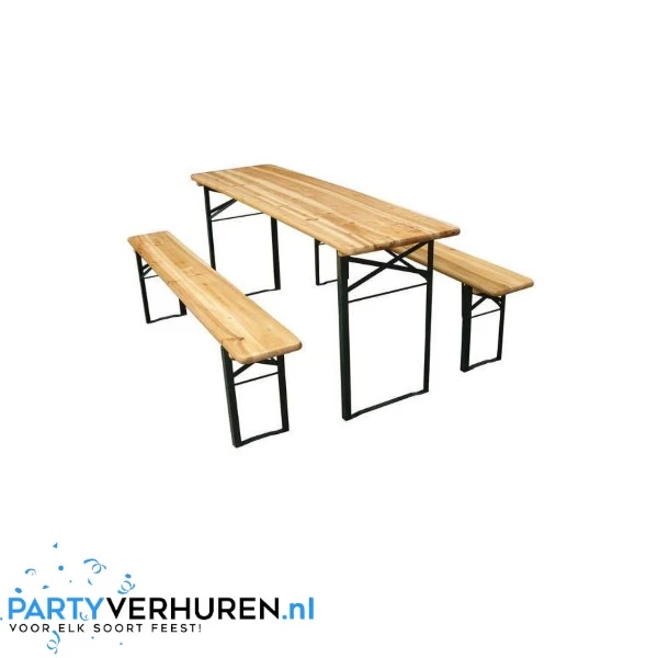 De bierbankenset bestaat uit één tafel met twee banken.