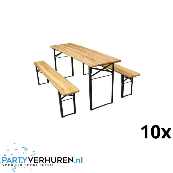 De bierbankenset bestaat uit 10 tafels en 20 banken.