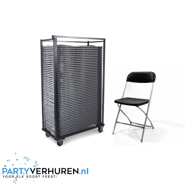 Deze donkere klapstoel is uiterst handig in gebruik tijdens feesten of events waarbij de indeling van de ruimte verandert. Deze klapstoel is namelijk zeer licht in gewicht, bovendien kan deze stoel ingeklapt en opgestapeld worden, als deze niet in gebruik is. Hierdoor bespaar je dus ook nog eens veel ruimte. Door de effen donkere kleur van de zitting en rugleuning, kan je deze klapstoel combineren binnen ieder interieur. De klapstoelen worden op een verrijdbare kar geleverd.