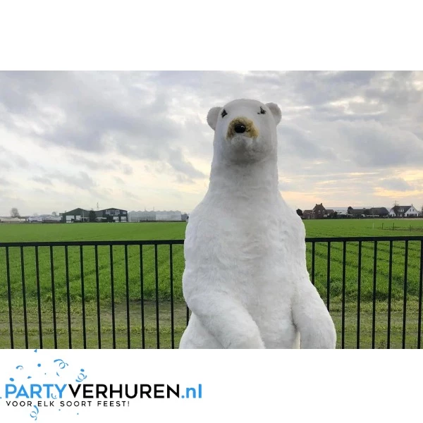Organiseert u een winterfeest? Deze prachtige levensgrote ijsbeer van 1,90 meter is een echte eyecatcher. Ook leuk in combinatie met de huur van onze arrenslee met lichtjes.
