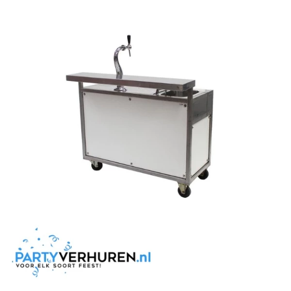 Professionele verrijdbare witte bar voor het uitserveren van uw dranken.