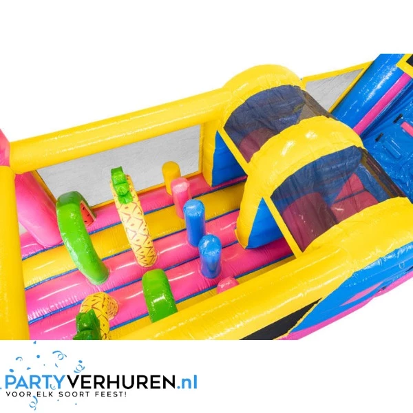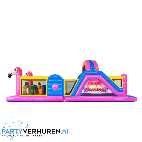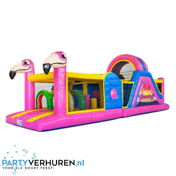 Welkom in het tropische vogelparadijs. Laat je begroeten door de twee vrolijke flamingo hoofden. Stormbaan Flamingo zal ongetwijfeld een blikvanger zijn op uw evenement, voor jong en oud! iedereen zal er plezier aan ervaren.