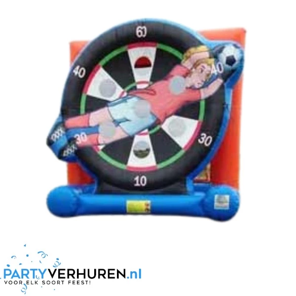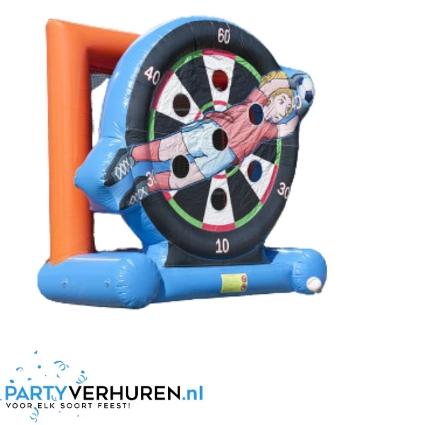 Organiseer uw eigen EK of WK en huur deze prachtige voetbalattractie voor uw evenement. Wie schiet de voetballen in de gaten van het voetbaldartspel en scoort de meeste punten?